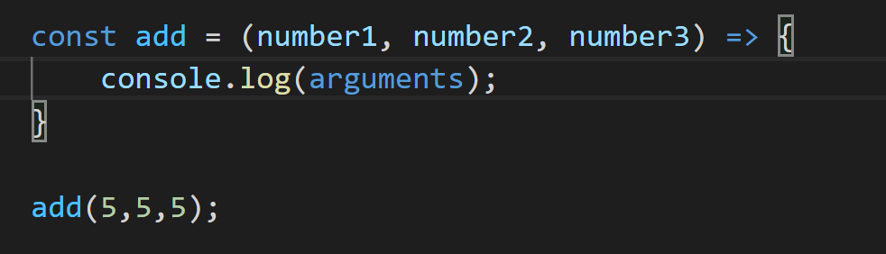 일반 함수와는 좀 많이 다릅니다. 화살표 함수는 변수를 이용합니다. 한마디로 변수에다 함수를 담는 거죠. 소괄호는 똑같이 매개변수를 받는 곳입니다. 하지만 화살표 함수는 arguments를 지원을 안 합니다.