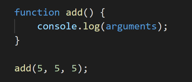 arguments는 배열 형태입니다. 이렇게 배열 형태면 arguments [0], arguments [1] 이런 식으로 데이터에 접근할 수 있습니다. 하지만 arguments배열은 "유사 배열"입니다. 그냥 이름처럼 배열과 유사하다입니다. 그래서 es6 배열 함수인. map,. filter는 유사 배열에 사용 시 에러가 납니다. 그래서 유사 배열을 배열로 변환시키는 방법이 많습니다. 이 방법은 나중에 알려드리겠습니다.