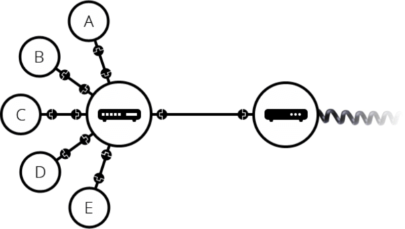 3. 단일 라우터로만으로도 몇백, 몇천대 연결은 불가능하여 라우터와 라우터를 연결